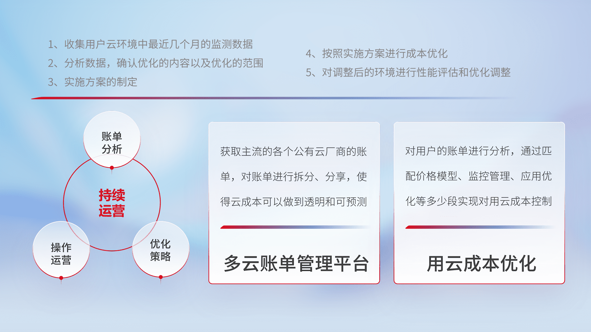 运用智能化工具分析云资源,,提供日常费用可视化工具,,自动账单拆分,,,成本优化云上费用,,,降本增效。。